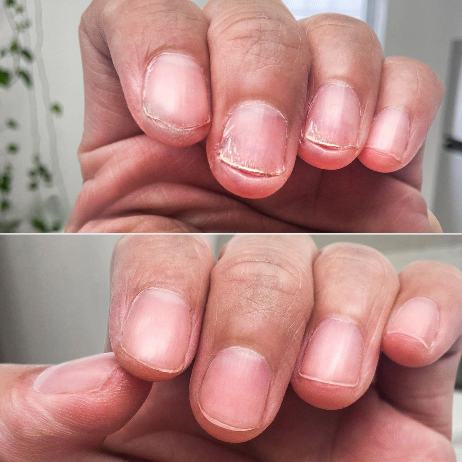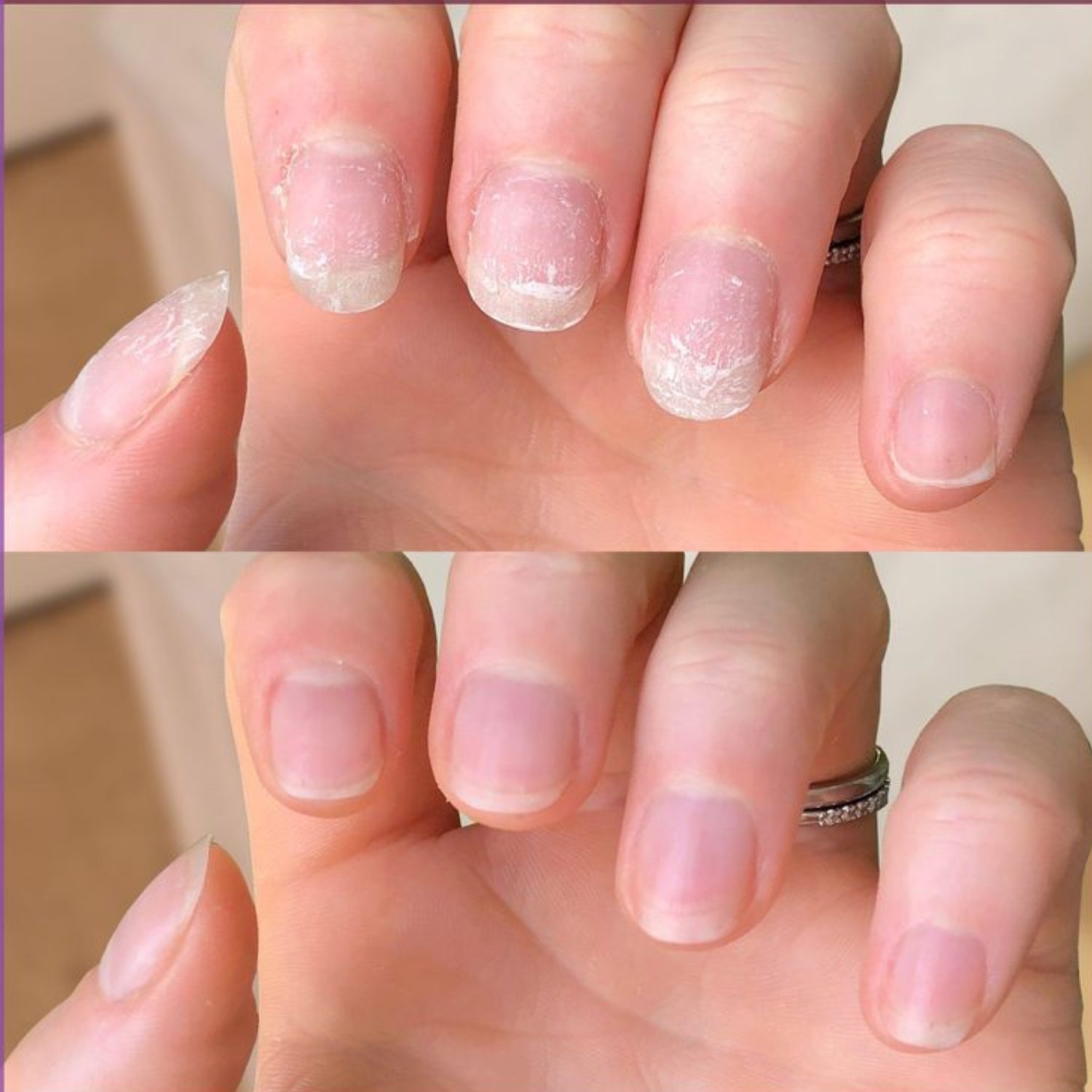 Les premières améliorations (brillance, ongles moins secs, cuticules assouplies) apparaissent dès les 3 à 7 premiers jours d’utilisation régulière.