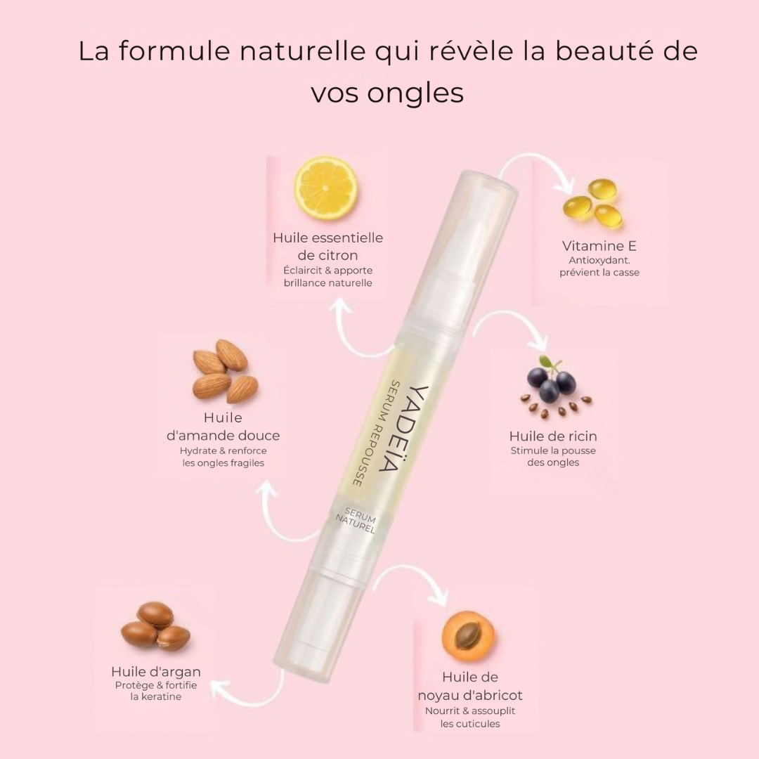 - Stimule la pousse naturelle des ongles (ricin)